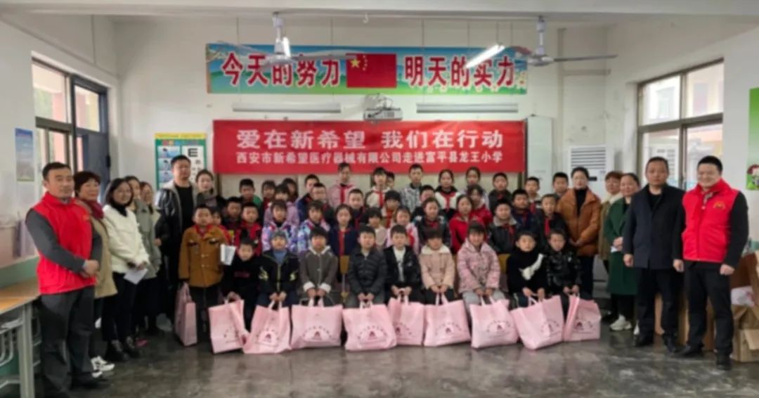 2023年3月16日,新希望醫(yī)療以自己的綿薄之力,將一如既往地支持公益事業(yè)。今日志愿者們從西安出發(fā),我們帶著愛心物資,前往渭南市富平縣齊村鎮(zhèn)龍王小學(xué),給孩子們送去滿滿的溫暖,希望用愛心為需要幫助的人撐起一片藍(lán)天。