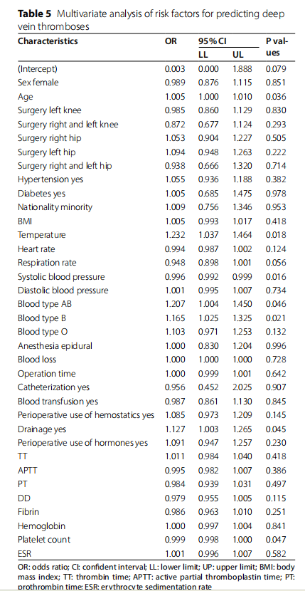 3.5預(yù)測(cè)深靜脈血栓形成的危險(xiǎn)因素分析