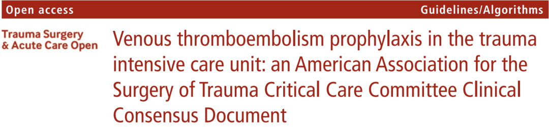 2021年創(chuàng)傷ICU深靜脈血栓預(yù)防策略:美國創(chuàng)傷危重癥學(xué)會專家共識