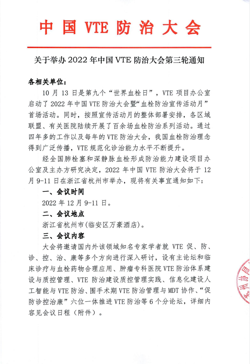 關(guān)于舉辦2022年中國VTE防治大會(huì)第三輪通知