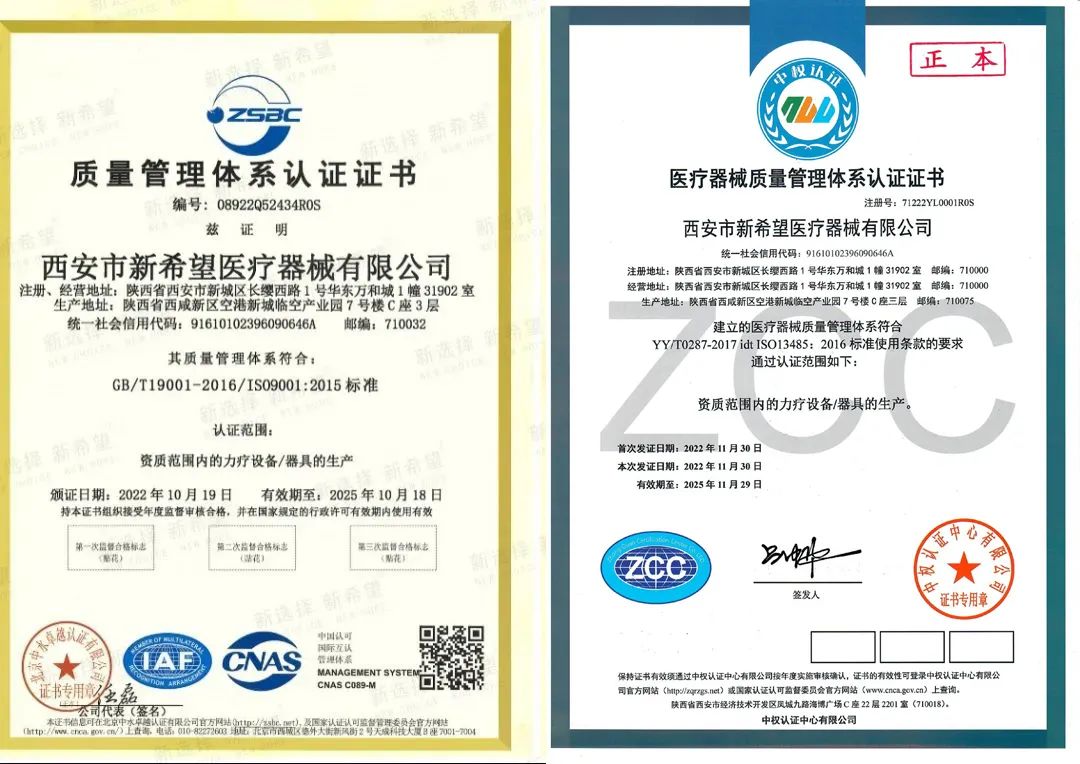 新希望醫(yī)療通過了GB/T19001-2016/ISO9001:2015質(zhì)量管理體系認證和ISO13485:2016醫(yī)療器械質(zhì)量管理體系認證,是對新希望醫(yī)療未來成長壯大的一種鞭策。獲得質(zhì)量體系雙認證,標志著新希望醫(yī)療醫(yī)療質(zhì)量管理水平和管理理念的不斷提升,在發(fā)展中奠定了一個又一個新的里程碑,新希望醫(yī)療將向社會提供更多優(yōu)質(zhì)的產(chǎn)品和服務(wù)。