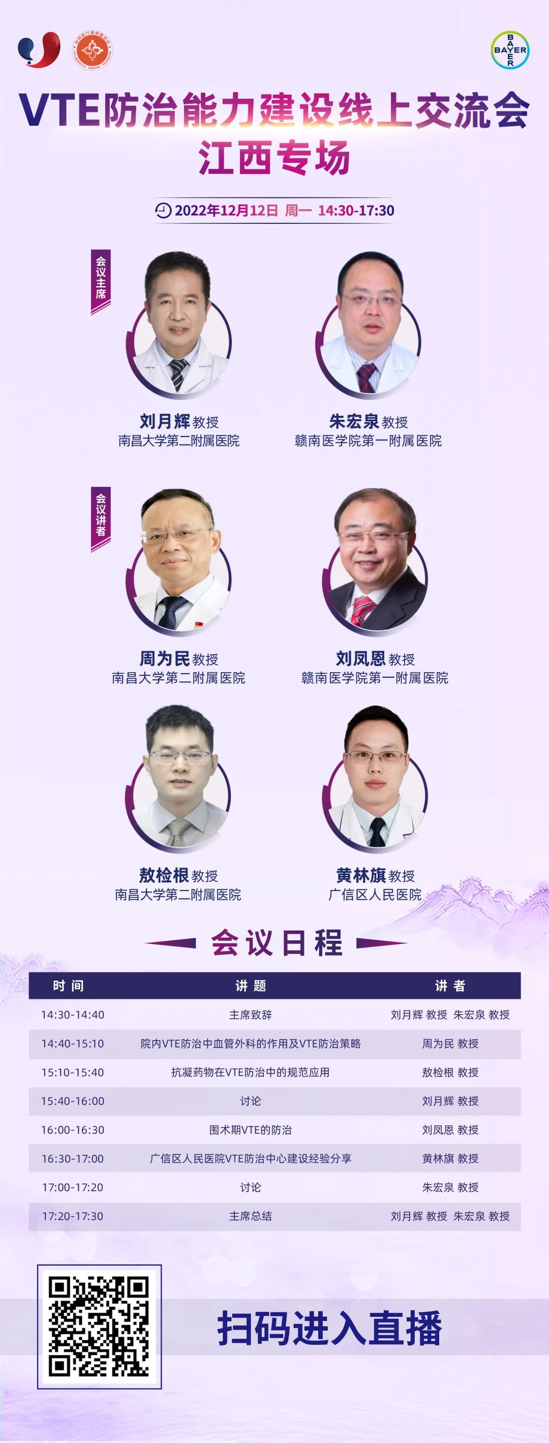 會議旨在促進江西省醫(yī)院VTE學(xué)術(shù)交流,在深入探討中提高臨床診斷和治療水平,內(nèi)容包括: