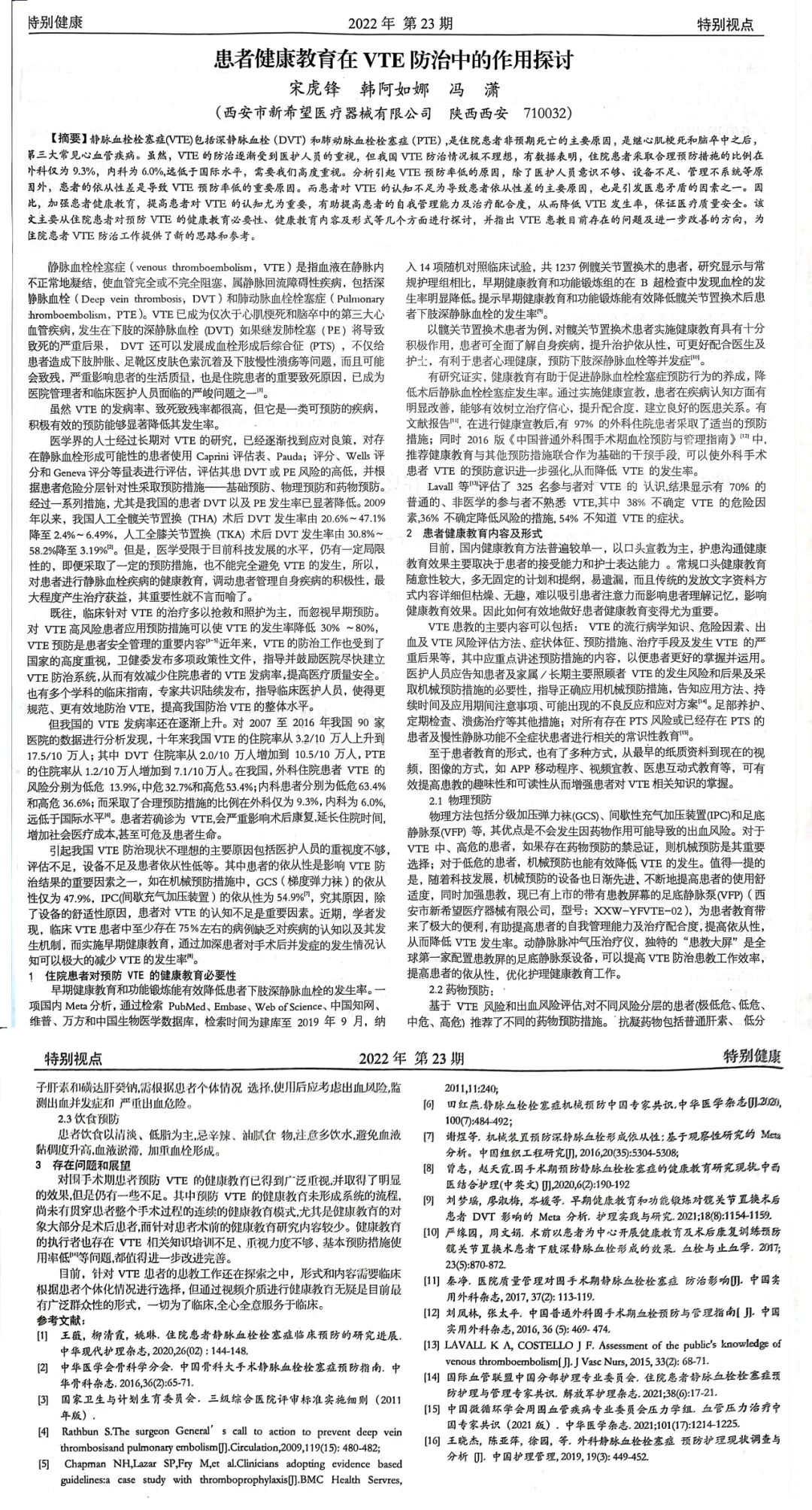 ? 恭祝新希望醫(yī)療撰寫(xiě)的《患者健康教育在VTE防治中的作用探討》一文成功發(fā)表在“特別健康”期刊2022年第23期。