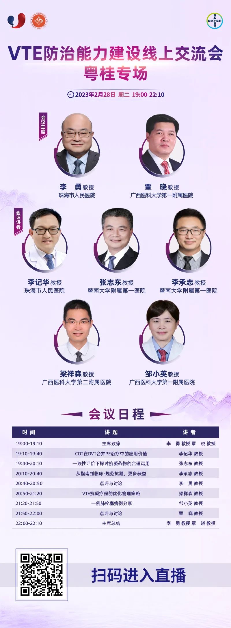 “VTE防治能力建設(shè)線上交流會(huì)粵桂專場(chǎng)”將于2023年2月28日召開。本次大會(huì)旨在配合全國(guó)VTE防治建設(shè),搭建VTE多學(xué)科交流平臺(tái),全面提升粵桂地區(qū)院內(nèi)VTE防治水平。