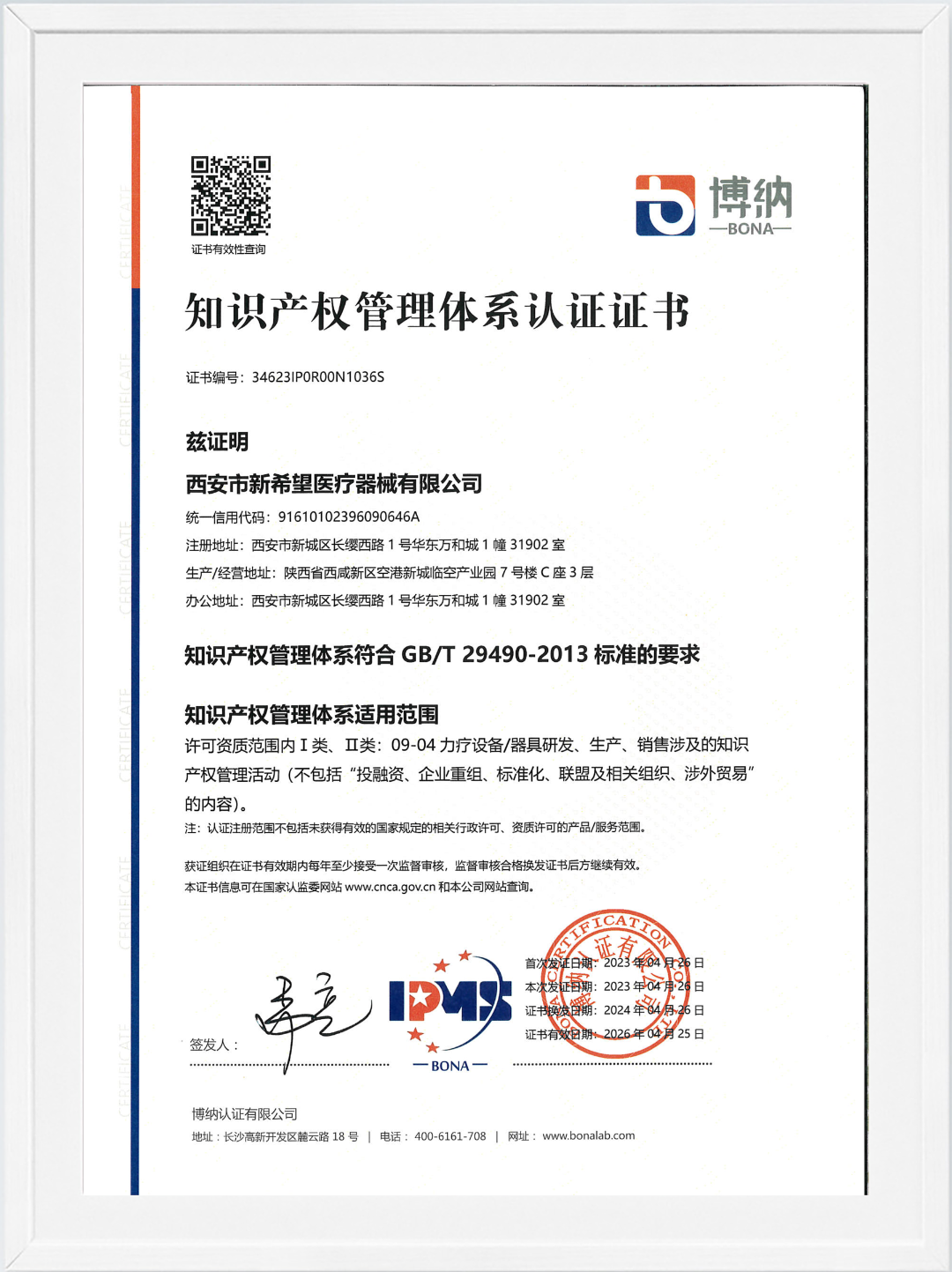 近日,西安市新希望醫(yī)療器械有限公司(簡稱“新希望醫(yī)療”)順利通過了知識產(chǎn)權(quán)管理體系認(rèn)證(GB/T 29490-2013,標(biāo)志著新希望醫(yī)療的知識產(chǎn)權(quán)管理工作邁上了新的階梯,是國家知識產(chǎn)權(quán)局等相關(guān)管理部門對新希望醫(yī)療知識產(chǎn)權(quán)工作成效的充分肯定和認(rèn)可。