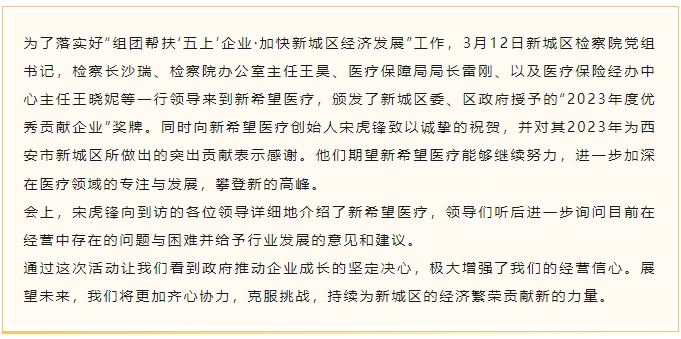 新希望醫(yī)療榮獲 “2023年度優(yōu)秀貢獻(xiàn)企業(yè)” 榮譽(yù)