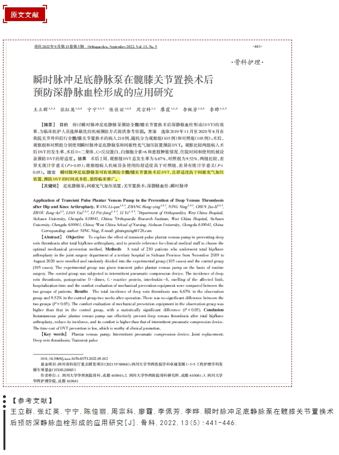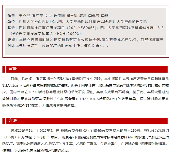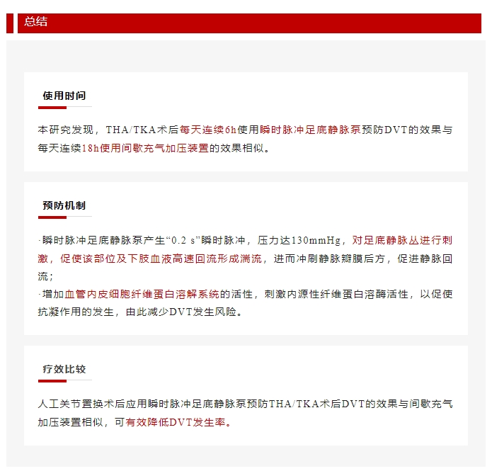 瞬時(shí)脈沖足底靜脈泵在髖膝關(guān)節(jié)置換術(shù)后預(yù)防深靜脈血栓形成的應(yīng)用研究