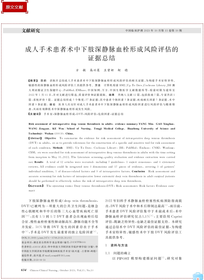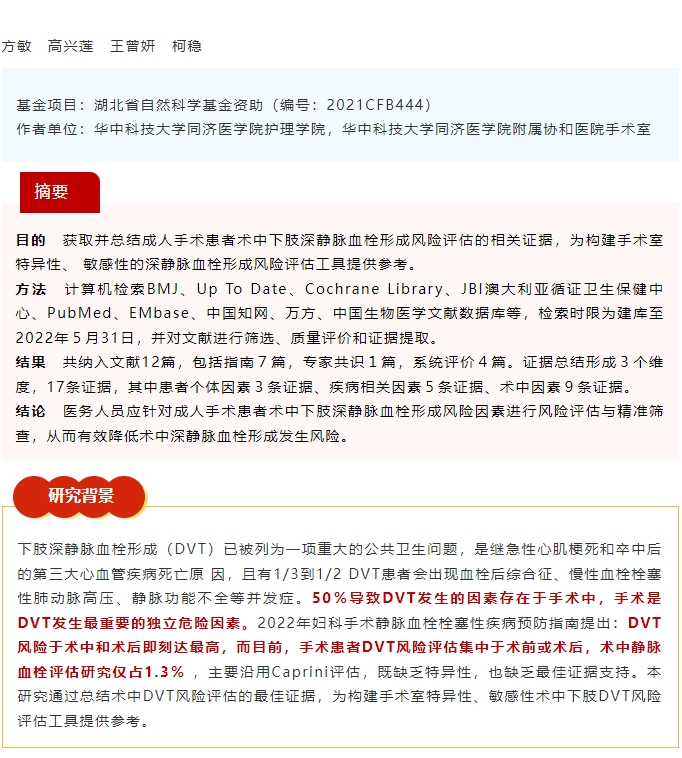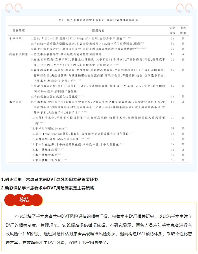 成人手術(shù)患者術(shù)中下肢深靜脈血栓形成風(fēng)險(xiǎn)評(píng)估的證據(jù)總結(jié)