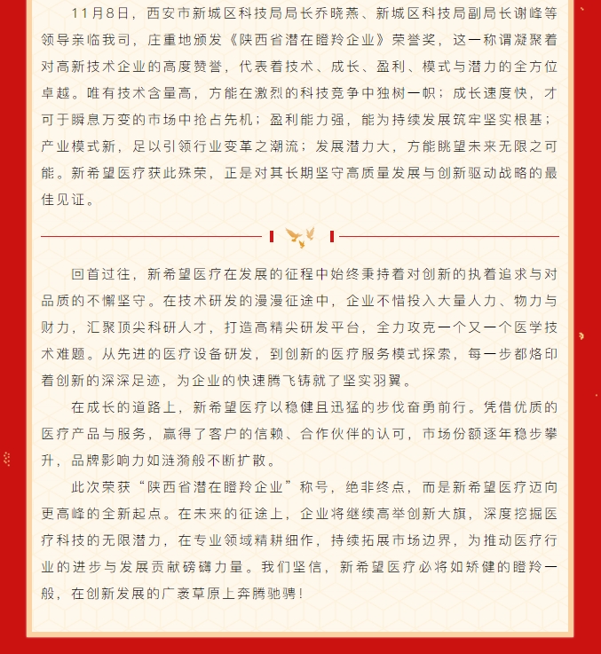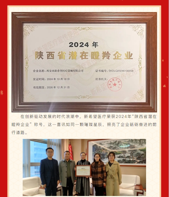 喜訊||新希望醫(yī)療獲評(píng)2024年陜西省潛在瞪羚企業(yè)