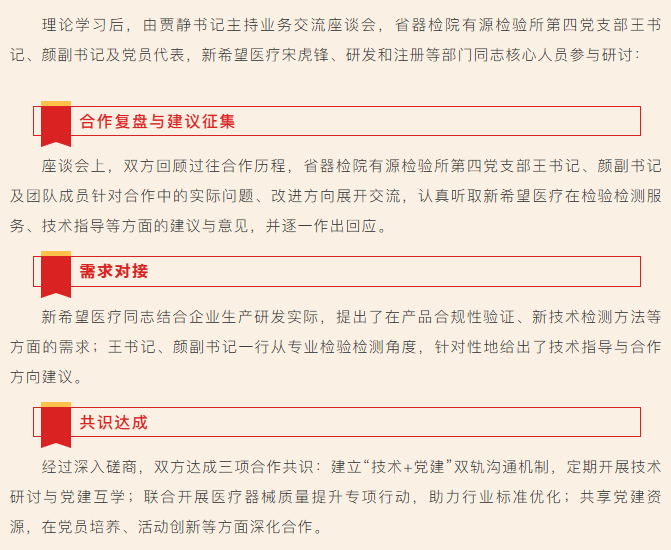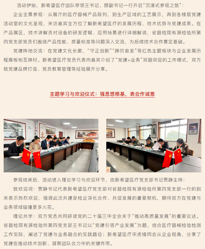 黨建共建聚合力 檢企攜手啟新程||新希望醫(yī)療與省器檢院有源檢驗所第四黨支部聯(lián)合主題黨日活動紀(jì)實