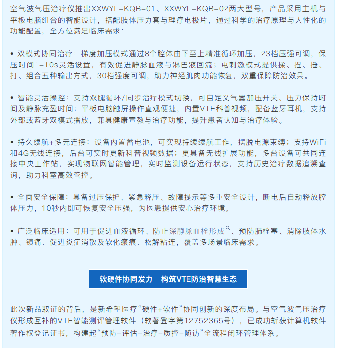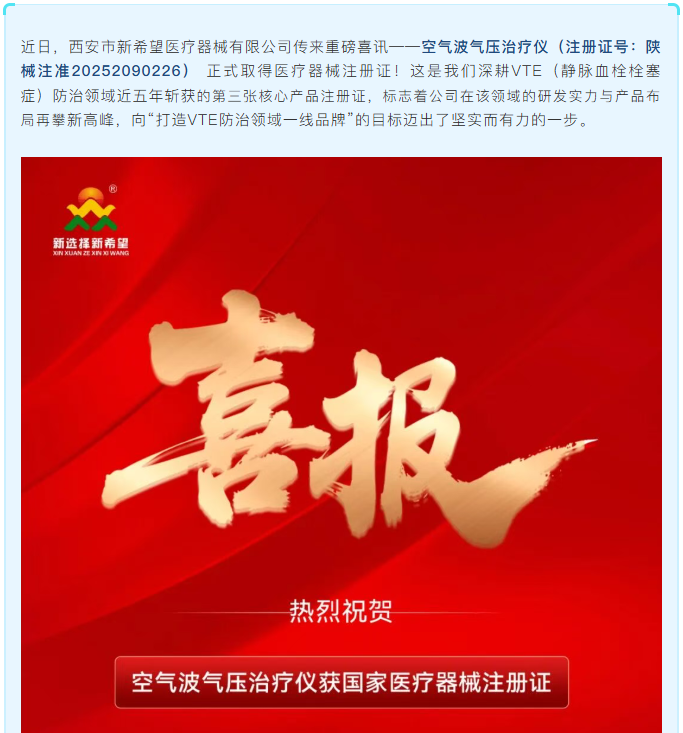 喜報 | 五年深耕再添證!新希望醫(yī)療空氣波氣壓治療儀取證,VTE防治領(lǐng)域再啟新程